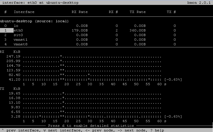 bmon is a portable bandwidth monitor with multiple input methods and output modes. A set of architecture specific input modules provide the core with the listof interfaces and their counters. The core stores this counters and provides rate estimation including a history over the last 60 seconds, minutes, hours and days to the output modules which output them according to the configuration.