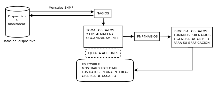 Es posible conocer los estados y datos de estos diferentes equipos para una posterior elaboración de reportes etc, elaborando una configuración personalizada de Nagios para cada caso en particular, por medio de testeo de paquetes de red, o haciendo uso de diferentes funciones que provee el protocolo SNMP (Simple Network Management Protocol) que nos permite gestionar y/o supervisar datos de diferentes elementos y componentes de la red como routers, switches, servidores etc y al ser un protocolo standard es posible monitorizar una amplia variedad de casos en escenarios con sistemas ó equipos diferentes.
