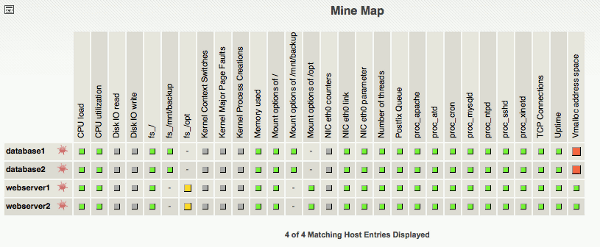 Conocer el estado de diferentes servicios brindados por un conjunto heterogéneo de dispositivos y equipos como servidores corriendo diferentes sistemas operativos, routers de los cuales dependen varios equipos, sistemas SCADA y sistemas de analizadores de humedad/temperatura/gases etc. Obtener información de los mismos como estado en red, tiempo arriba, puertos abiertos, servicios y procesos corriendo, carga de CPU, carga de memoria física, carga de memoria virtual, espacio en disco, interfaces de red activas.
