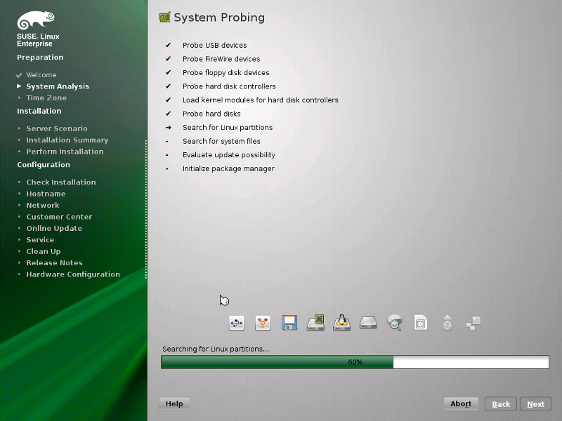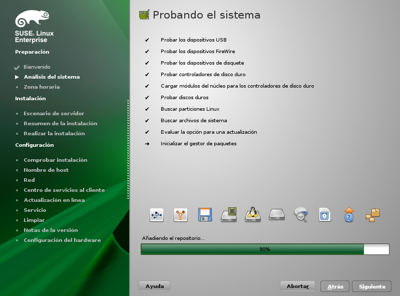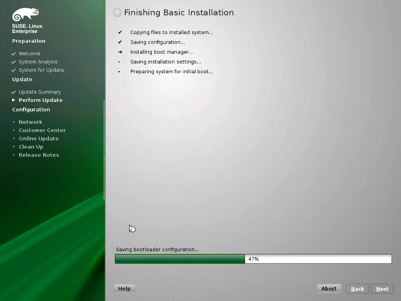 Para ellos debemos reiniciar el servidor y luego iniciarlo con el CD/DVD booteable de SuSE, el proceso total dependiendo del número de paquetes a actualizar, demora como mínimo 40 minutos.